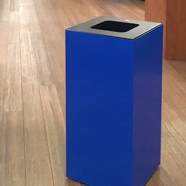 Our in-house design team can customize your recycling bins to promote your brand and program, and to match any décor.