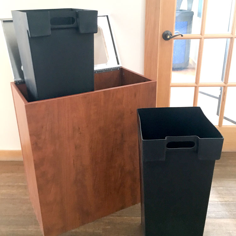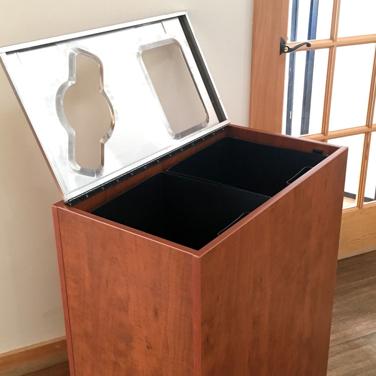 Our in-house design team can customize your recycling bins to promote your brand and program, and to match any décor.