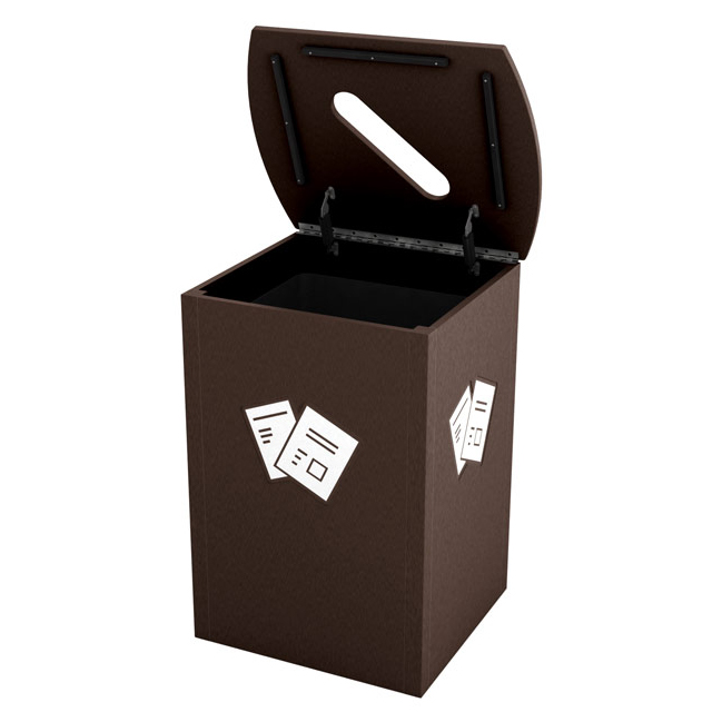Our in-house design team can customize your recycling bins to promote your brand and program, and to match any décor.