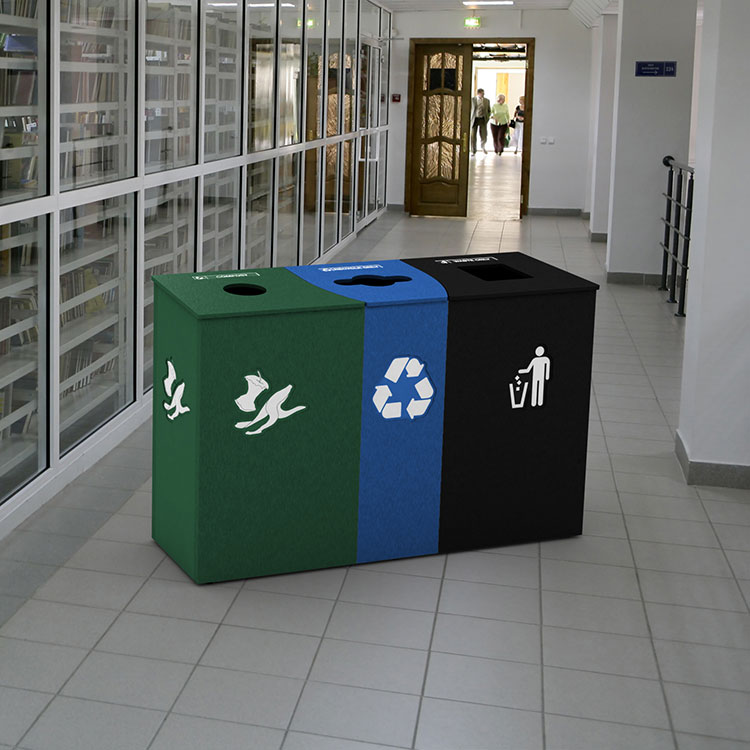 Our in-house design team can customize your recycling bins to promote your brand and program, and to match any décor.