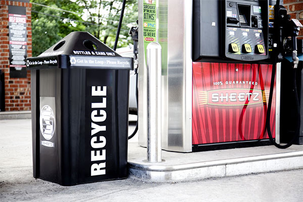 Sheetz, with over 500 locations in 6 mid-Atlantic states, is no stranger to environmental concerns. Sheetz installed the first electric vehicle charging stations at convenience stores, and its employee wellness center won LEED Gold certification. So when approached by an acquaintance from the Pennsylvania Recycling Coalition about installing recycling bins, Sheetz was naturally interested.