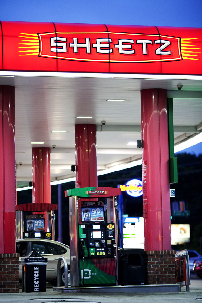 Details MatterBut a convenience store/gas station is a lot different than a corporate lobby or a college cafeteria. Lots of traffic, by definition. A customer base that isn't expecting to see a recycling container. Space issues. Wind--gas stations have lots of wide-open space, and the mid-Atlantic sees its share of windstorms. And then there's aesthetics. Sheetz has its own look, its own signature color (red) and a reputation for being a place to get good food on the road. It was important to come up with something that didn't clash with any of that.