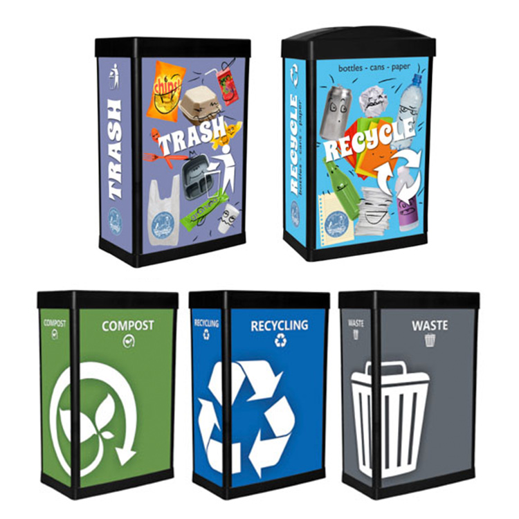 Our in-house design team can customize your recycling bins to promote your brand and program, and to match any décor.