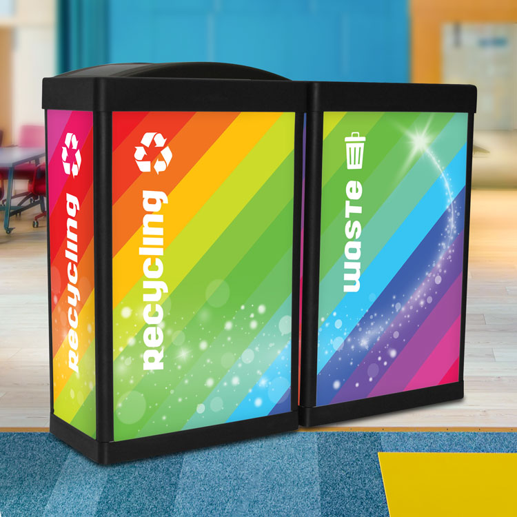Our in-house design team can customize your recycling bins to promote your brand and program, and to match any décor.