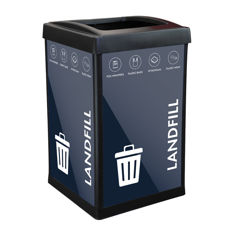 Our in-house design team can customize your recycling bins to promote your brand and program, and to match any décor.