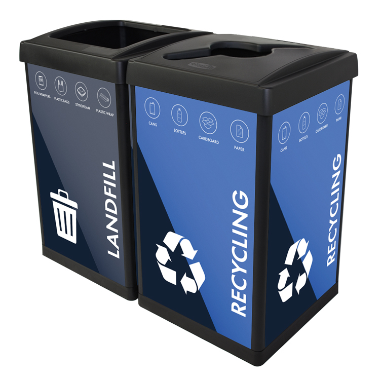 Our in-house design team can customize your recycling bins to promote your brand and program, and to match any décor.
