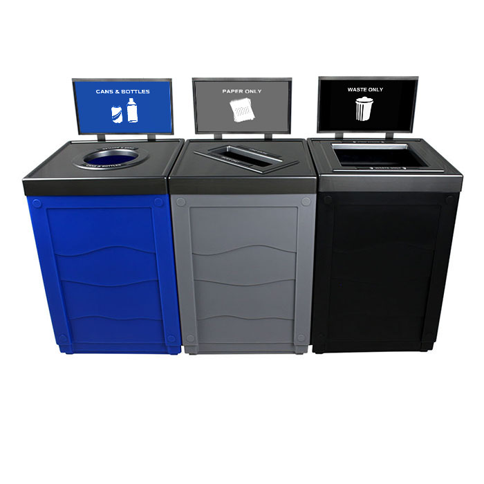 Our in-house design team can customize your recycling bins to promote your brand and program, and to match any décor.