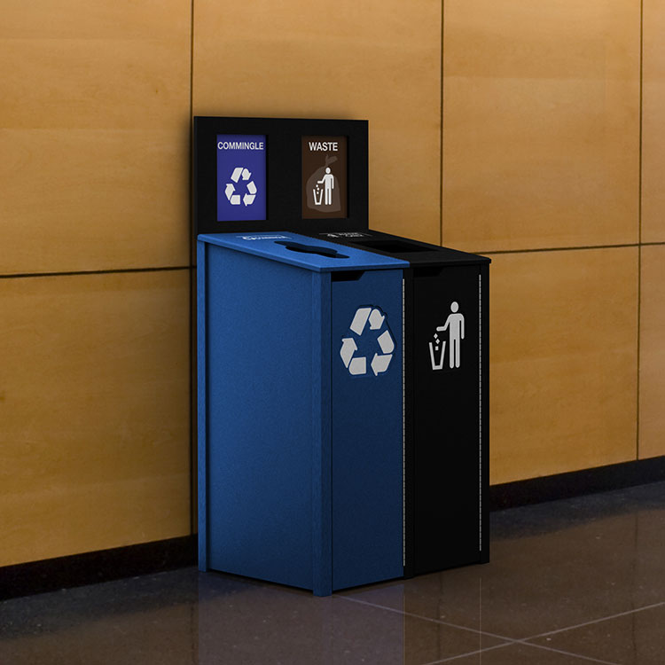 Our in-house design team can customize your recycling bins to promote your brand and program, and to match any décor.
