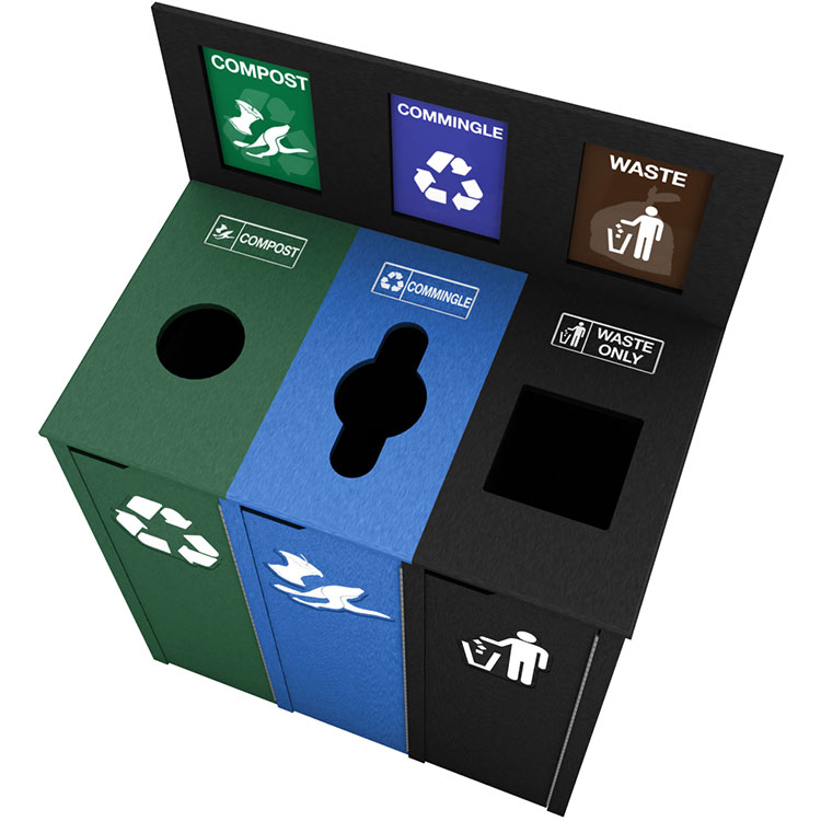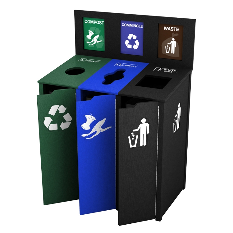 Our in-house design team can customize your recycling bins to promote your brand and program, and to match any décor.