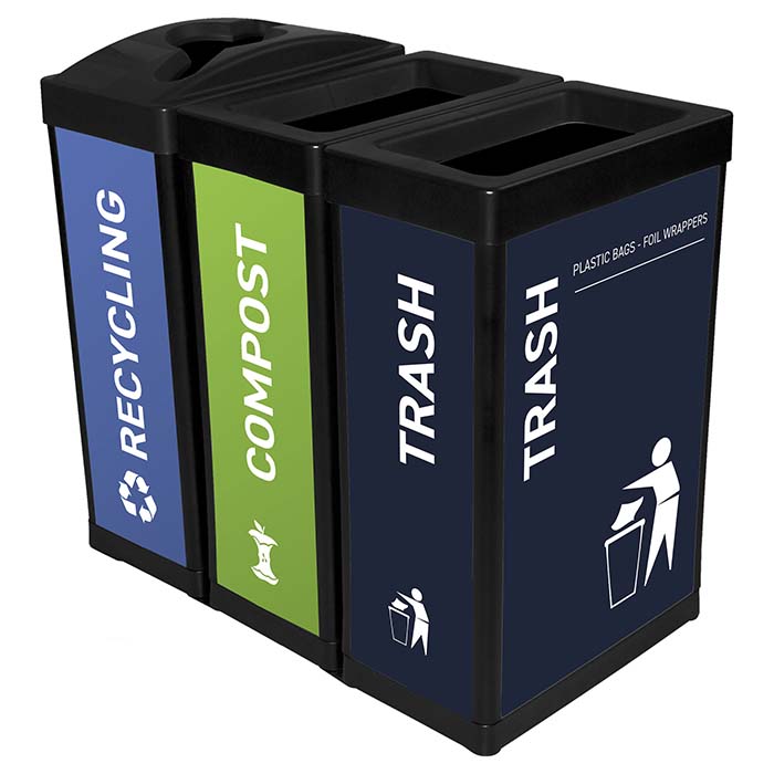 Our in-house design team can customize your recycling bins to promote your brand and program, and to match any décor.