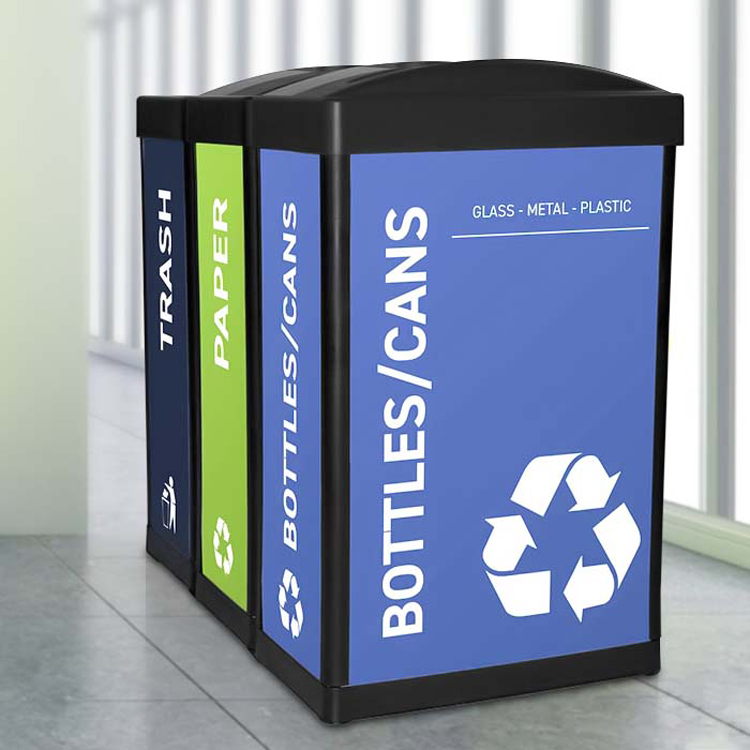 Our in-house design team can customize your recycling bins to promote your brand and program, and to match any décor.