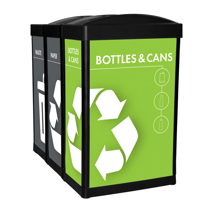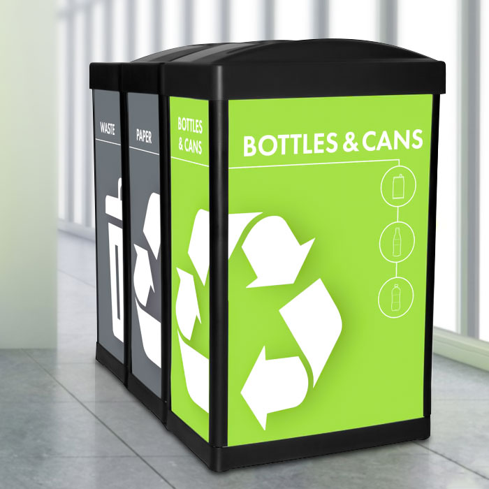 Our in-house design team can customize your recycling bins to promote your brand and program, and to match any décor.