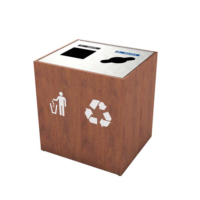 Our in-house design team can customize your recycling bins to promote your brand and program, and to match any décor.