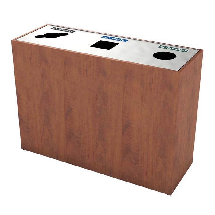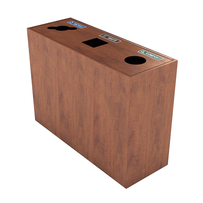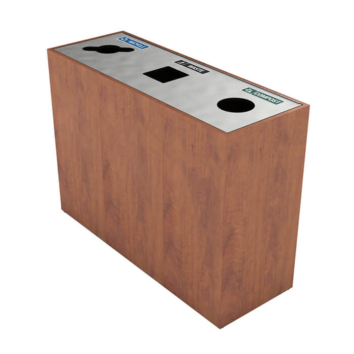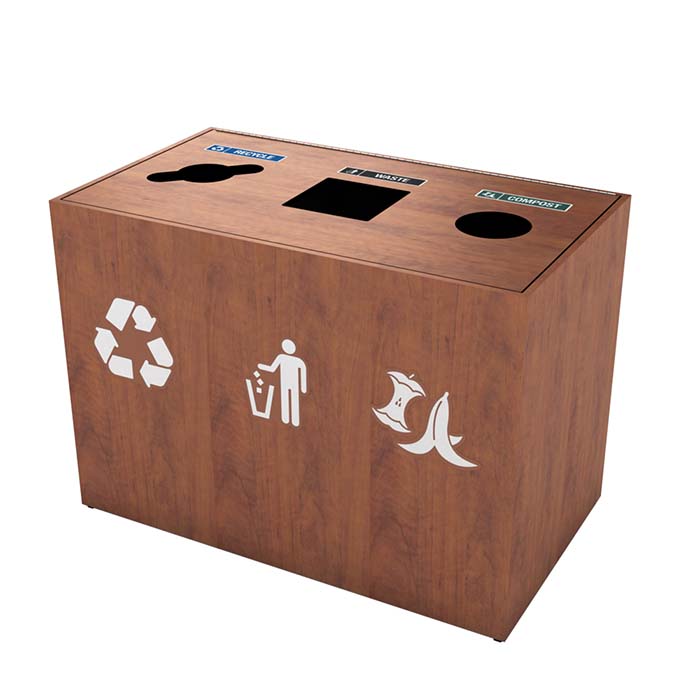 Our in-house design team can customize your recycling bins to promote your brand and program, and to match any décor.