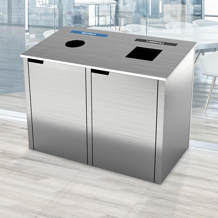 Our in-house design team can customize your recycling bins to promote your brand and program, and to match any décor.
