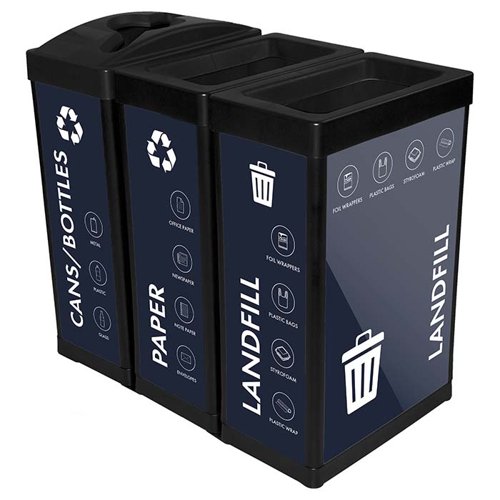 Our in-house design team can customize your recycling bins to promote your brand and program, and to match any décor.