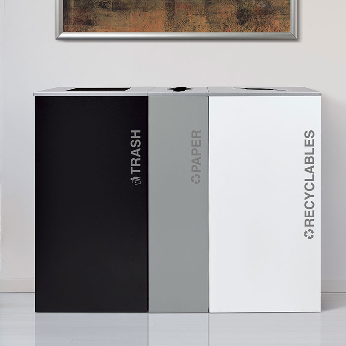 Our in-house design team can customize your recycling bins to promote your brand and program, and to match any décor.