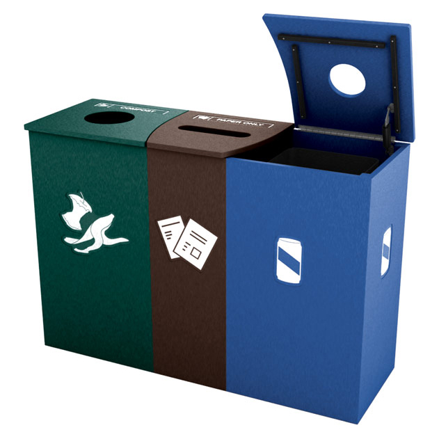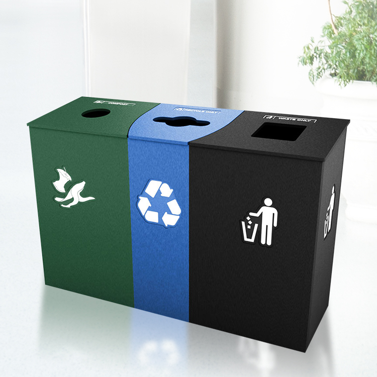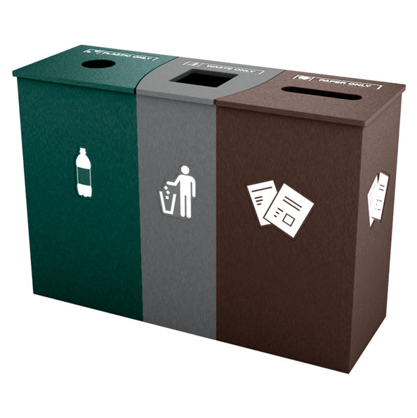 Our in-house design team can customize your recycling bins to promote your brand and program, and to match any décor.