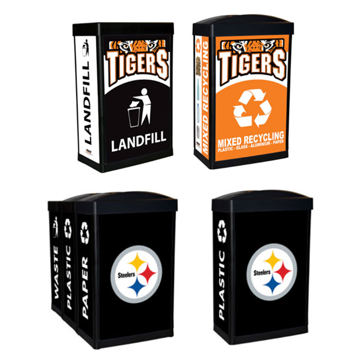 Our in-house design team can customize your recycling bins to promote your brand and program, and to match any décor.
