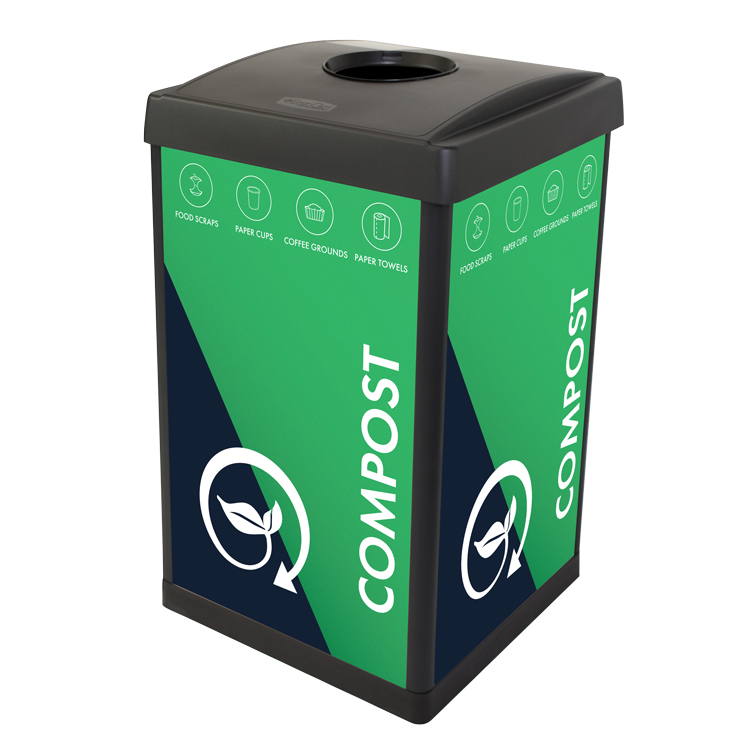 Our in-house design team can customize your recycling bins to promote your brand and program, and to match any décor.