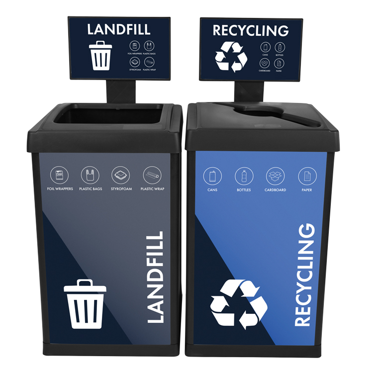 Our in-house design team can customize your recycling bins to promote your brand and program, and to match any décor.