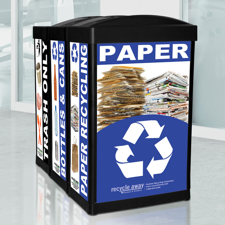 Our in-house design team can customize your recycling bins to promote your brand and program, and to match any décor.