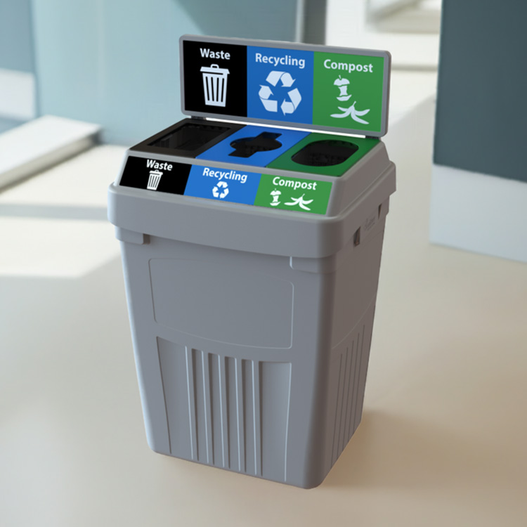 Our in-house design team can customize your recycling bins to promote your brand and program, and to match any décor.
