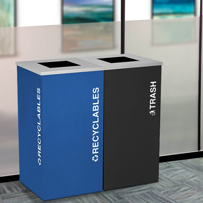 Our in-house design team can customize your recycling bins to promote your brand and program, and to match any décor.