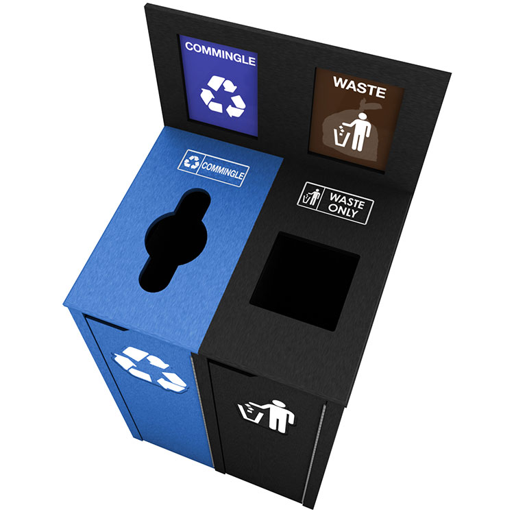 Our in-house design team can customize your recycling bins to promote your brand and program, and to match any décor.