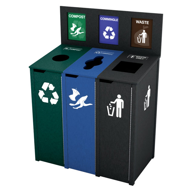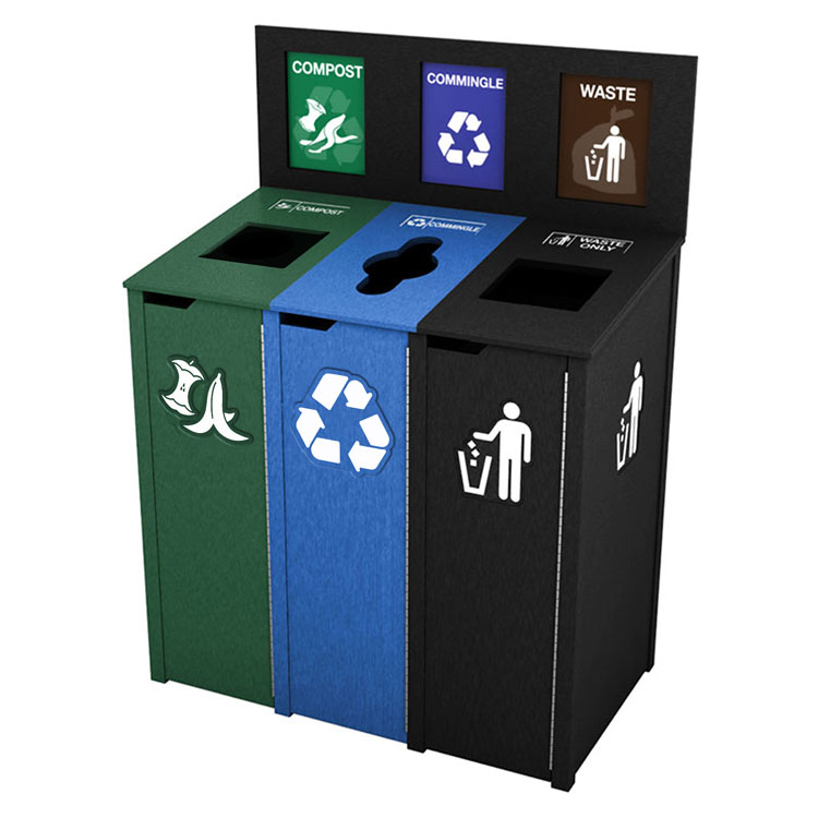 Our in-house design team can customize your recycling bins to promote your brand and program, and to match any décor.