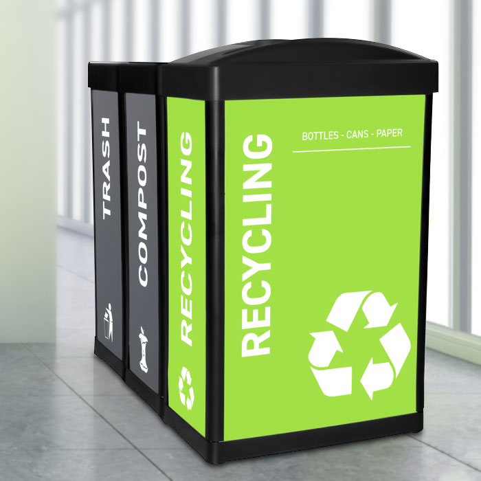 Our in-house design team can customize your recycling bins to promote your brand and program, and to match any décor.