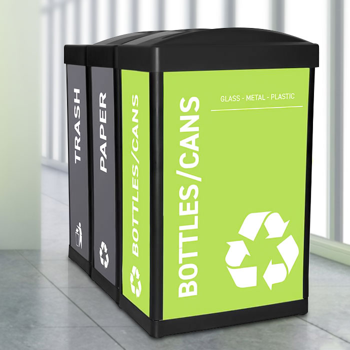 Our in-house design team can customize your recycling bins to promote your brand and program, and to match any décor.