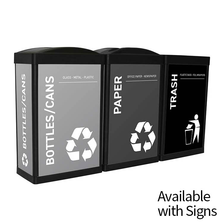 Our in-house design team can customize your recycling bins to promote your brand and program, and to match any décor.