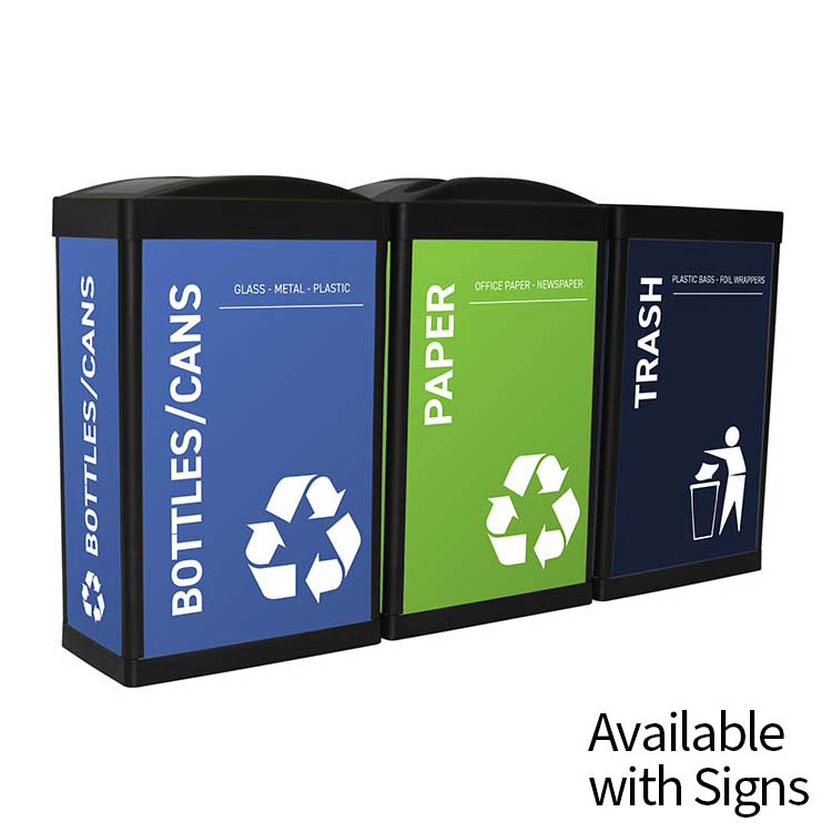 Our in-house design team can customize your recycling bins to promote your brand and program, and to match any décor.