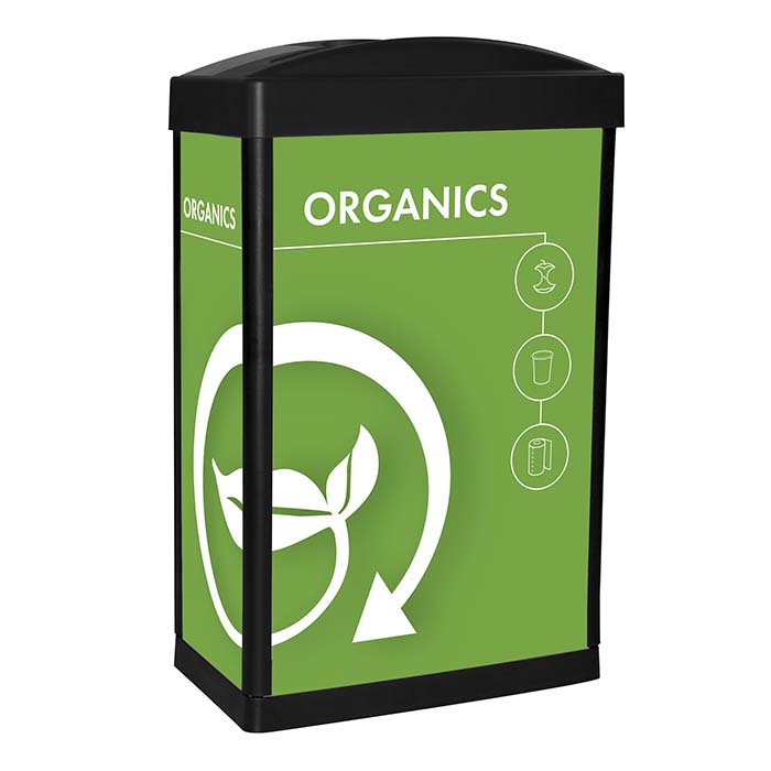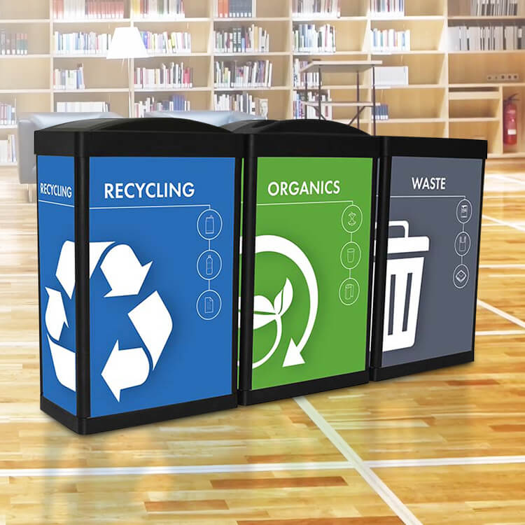 Our in-house design team can customize your recycling bins to promote your brand and program, and to match any décor.