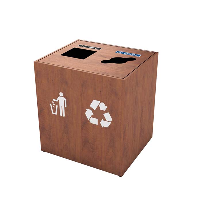 Our in-house design team can customize your recycling bins to promote your brand and program, and to match any décor.