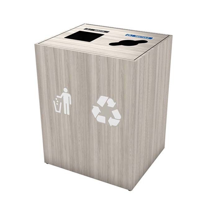 Our in-house design team can customize your recycling bins to promote your brand and program, and to match any décor.