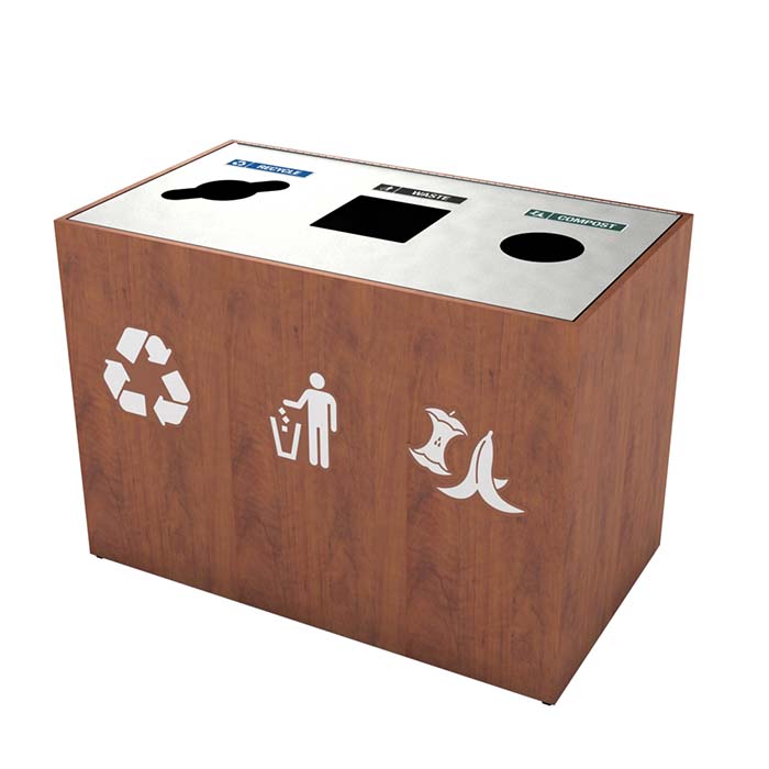 Our in-house design team can customize your recycling bins to promote your brand and program, and to match any décor.